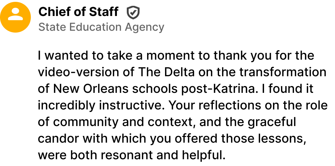 Through The Delta, Watershed Advisors has grown a highly engaged network of state education leaders who actively use their insights in their work.